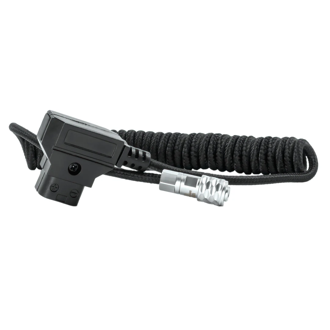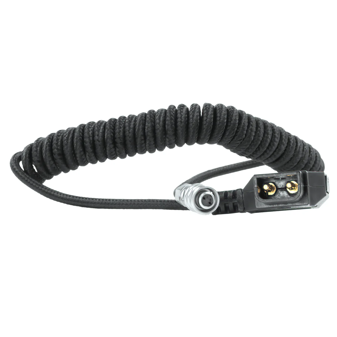 Este cable de alimentación en espiral D-Tap a 2 pines le permite alimentar su Blackmagic Cinema Camera 4K o 6K usando una batería externa con un puerto D-Tap.
