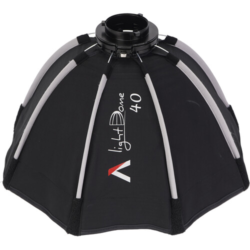 El Light Dome 40 de ocho lados con rejilla para STORM 80c de Aputure transforma la salida de luz de tu monolight LED STORM 80c en una luz de área ultrasuave, bañando al sujeto con una luz difusa. Tiene un diámetro de 15.7″ y se fija rápidamente mediante su montura mini-Bowens ProLock. Incluye una bolsa de transporte, una rejilla de control desmontable y difusores de uno y dos pasos que permiten ajustar con precisión la intensidad y la calidad de la luz.
